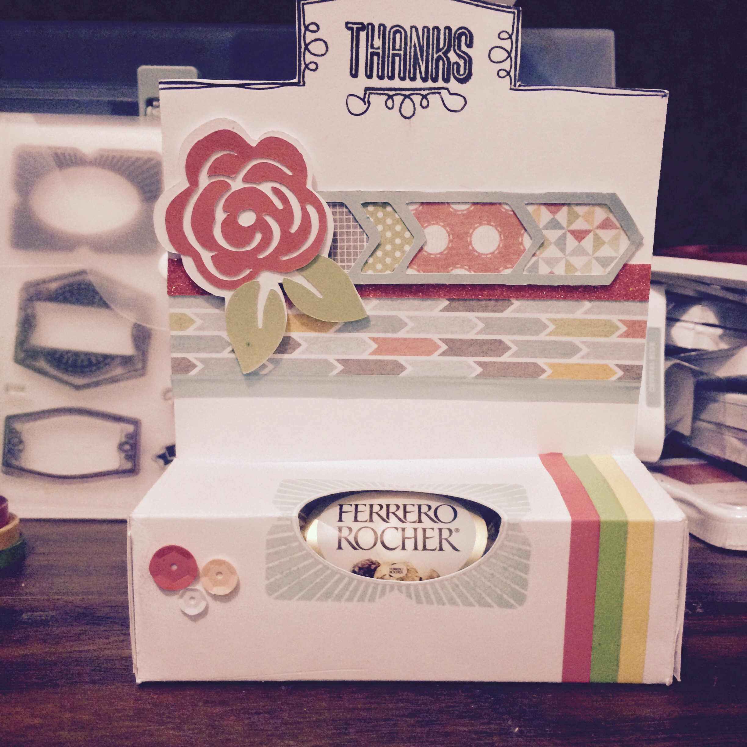 This little thank you gift is not much – it contains a small box of yummy Ferro Rocher’s but I have made some pretty packaging just to present it.