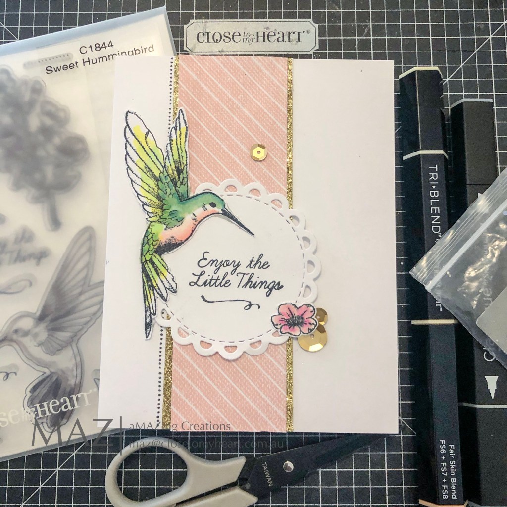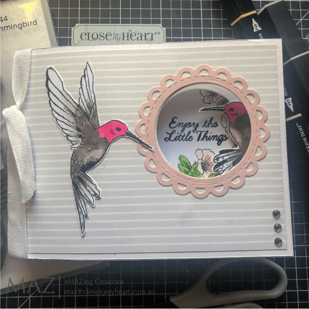 Below is a couple of ideas from the Close To My Heart Art Department using the Sweet Hummingbird on a scrapbook layout & the other on a card. Plus a few Ideas I found on Instagram & YouTube to really inspire you.