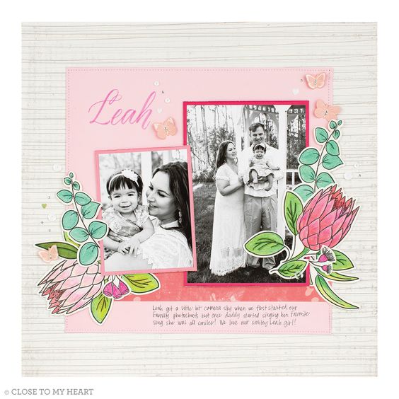 Below is the Close To My Heart Art Department idea of using the Blossoming Friendship Stamp + Thin Cuts stamps on the scrapbook layout.