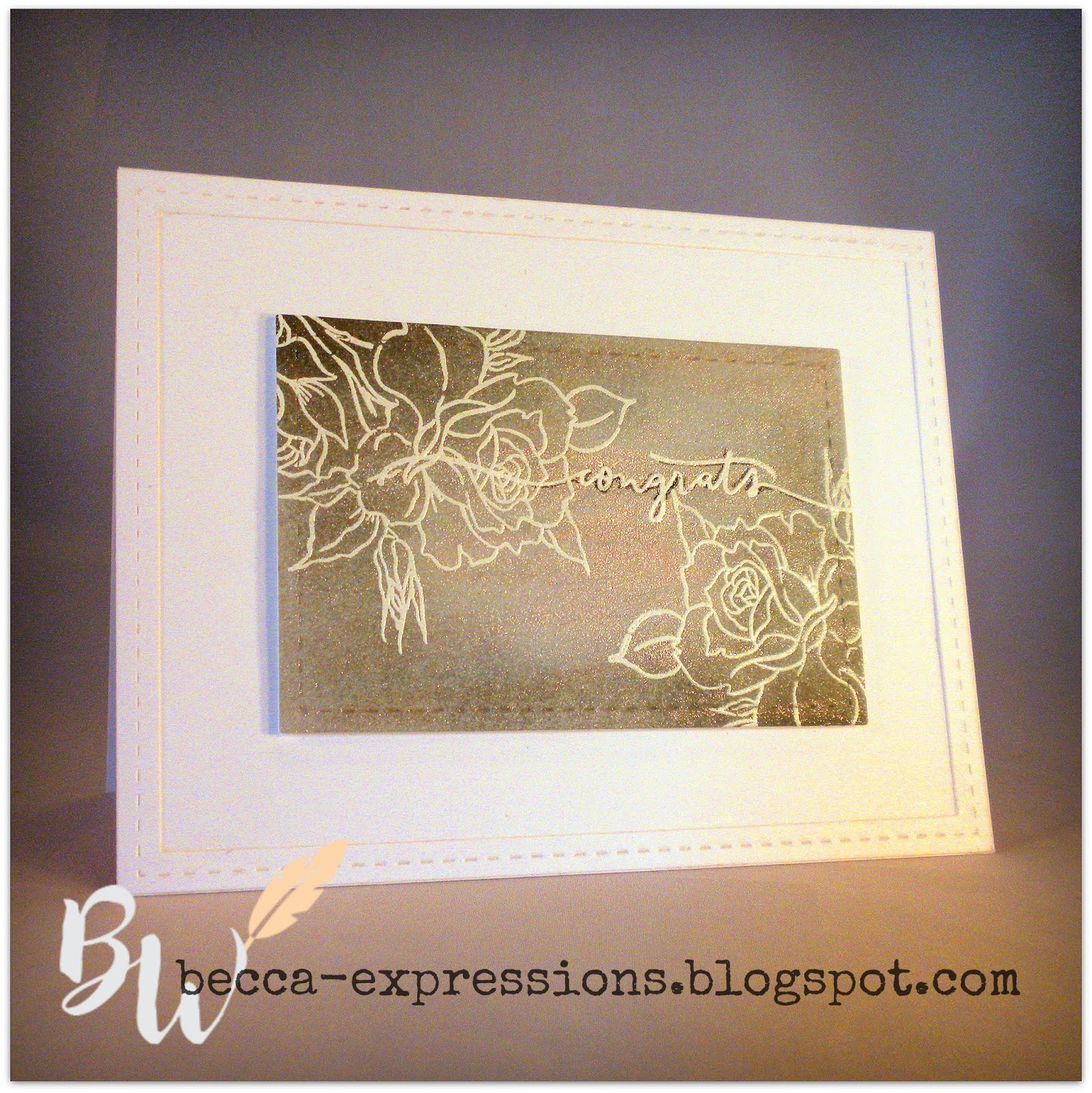 I love the combination of the white embossed the rose images on the cardstock that have been sponged Pebble ink at the edges