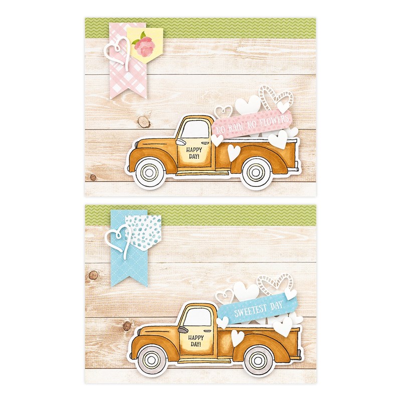 This was framed with the Curved Rectangle Frame Thin Cuts cut out of White Daisy Cardstock & finished off with a Gold Embossed crown over a Hope it’s a magical Day sentiment from the Storybook—Cardmaking Stamp + Thin Cuts.
