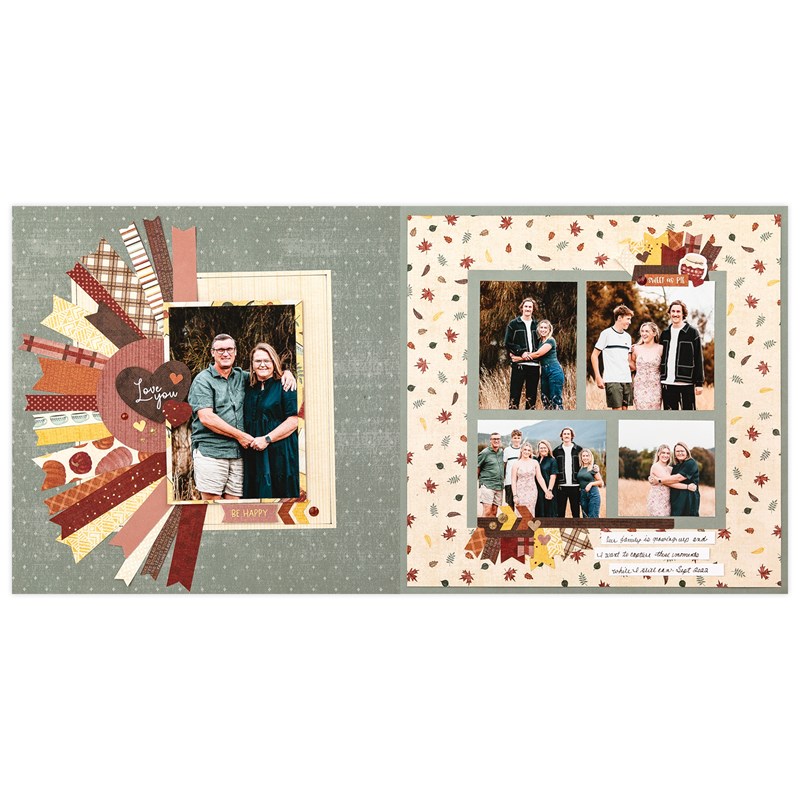Lots of fun optional techniques are provided with the Cozy Up Scrapbooking Workshop Kit, have fun trying out Sponging, Stenciling, and Distress Oxide™ Ink with this kit. With easy-to-follow instructions to create three coordinating 12″ × 12″ two-page layouts, this is a sure to keep you busy.