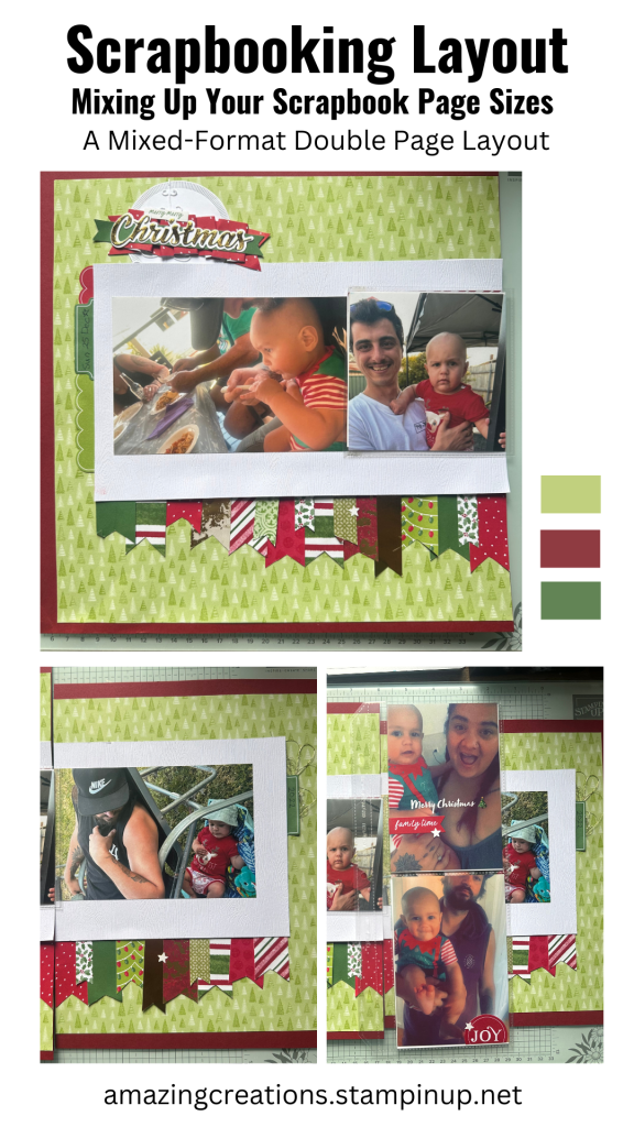 Get inspired to create your own one-of-a-kind scrapbook layouts! This Christmas-themed project is a perfect example of how to combine 12×12 and 8.5×11 pages for a cohesive and eye-catching design & it is a fun way to be creative as well as creating some interactive scrapbook layouts.