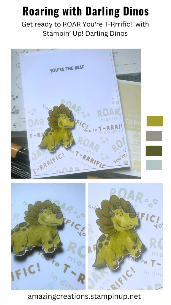 Get ready to ROAR You’re T-Rrrific! This cheerful card features a vibrant Triceratops from the Darling Dinos stamp set and is a fun and easy project for any occasion!