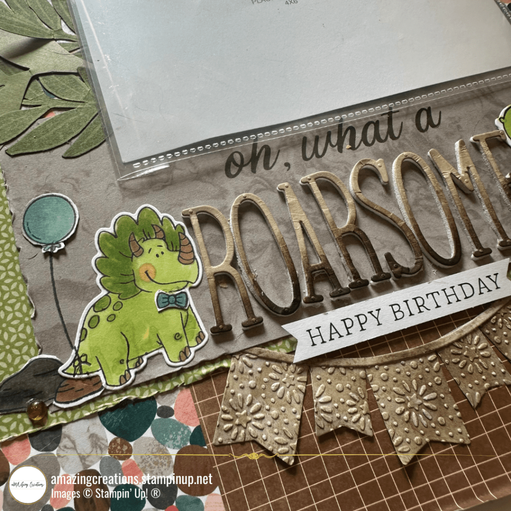 Add texture, colour, and playful stamped accents, embossed paper and foam raised titles. to create a design that’s sure to roar with personality.