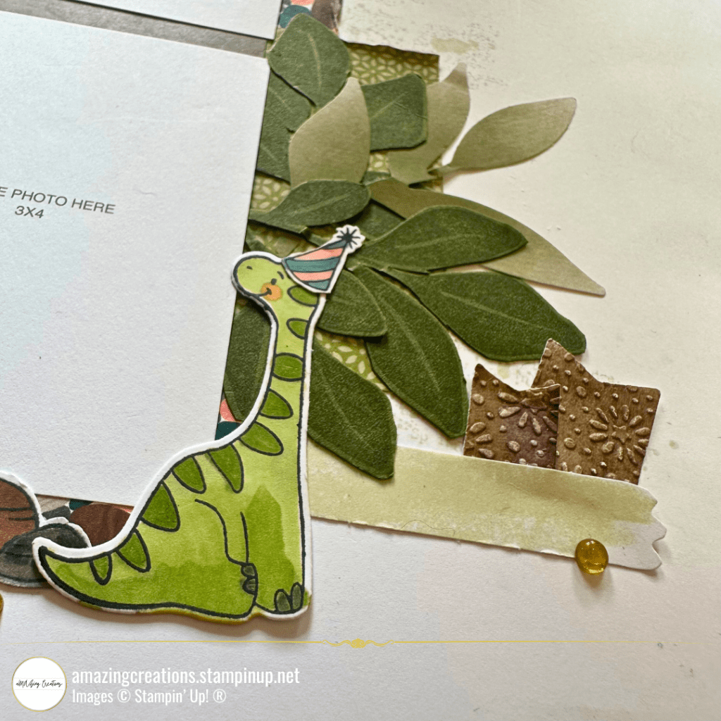 Looking for the perfect way to capture those unforgettable birthday memories? This double-page scrapbook layout combines the whimsical charm of the Sweet Days of Autumn Designer Series Paper with the playful texture of the Otterly Adorable pebbled pattern paper. Add a dash of fun with the Darling Dinos Bundle and finish it off with some leafy greens from the Leaf Collection and artistic splatters and stamped text from the Elements of Text Stamp Set.