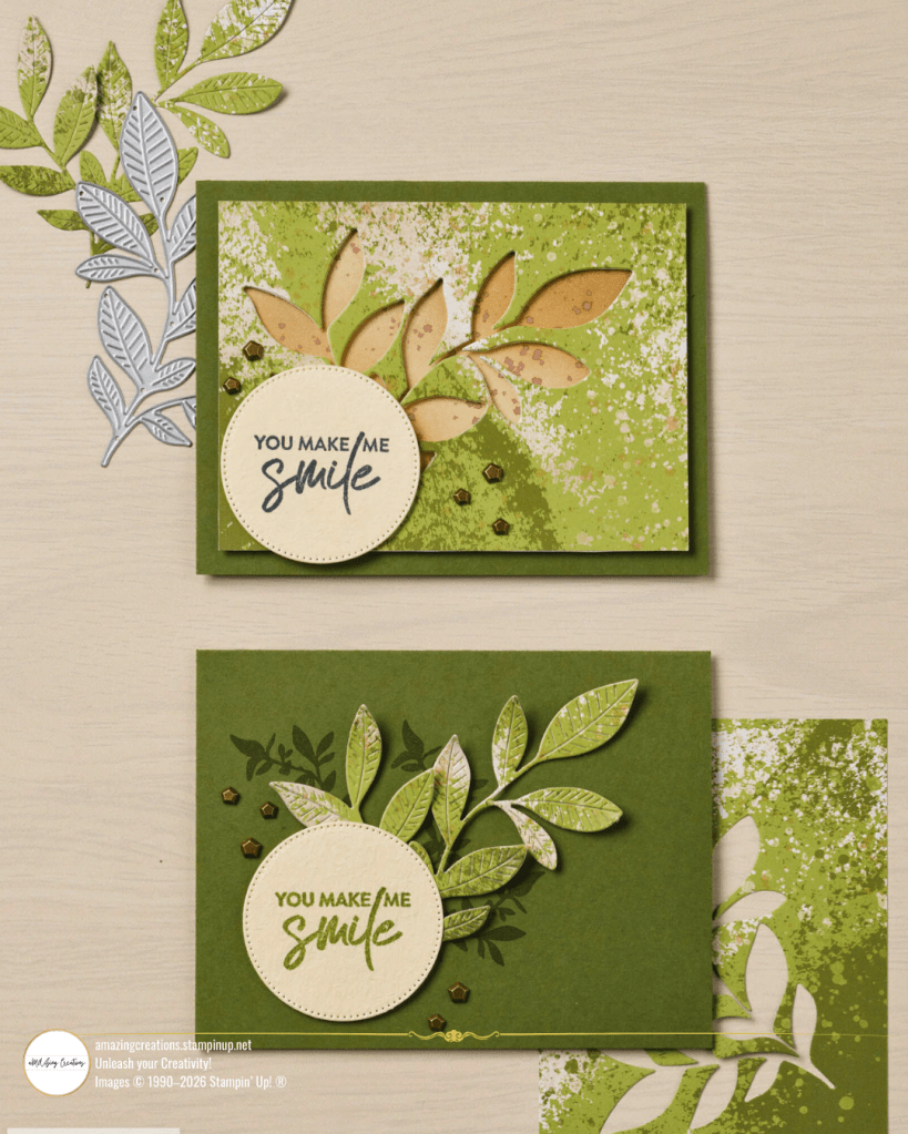 Here’s a card making truth bomb: Every time you die cut something, you’re actually creating TWO design opportunities—the cut-out shape AND the negative space left behind. See how the Nature’s Symphony Bundle can create two cards from one background!